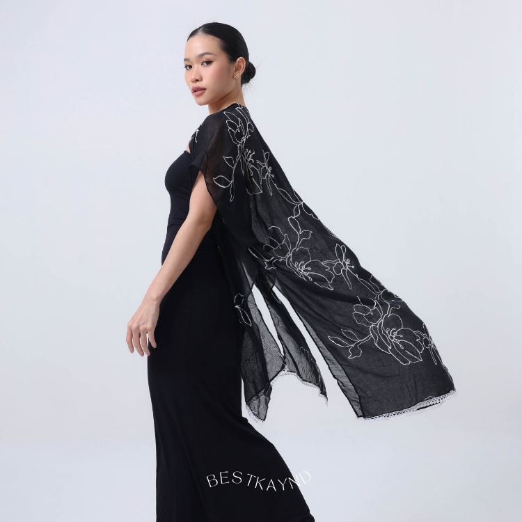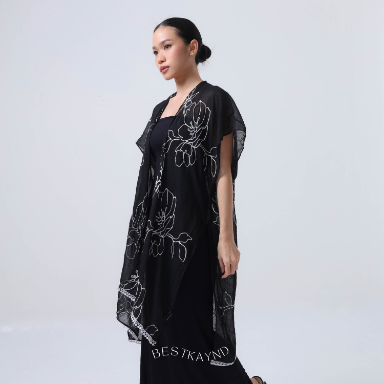 Linea Outer, a beautiful black shade with floral white embrodiery details.